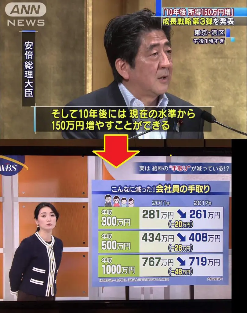 安倍政権でみんな金がたまらないくらい所得が落ちた