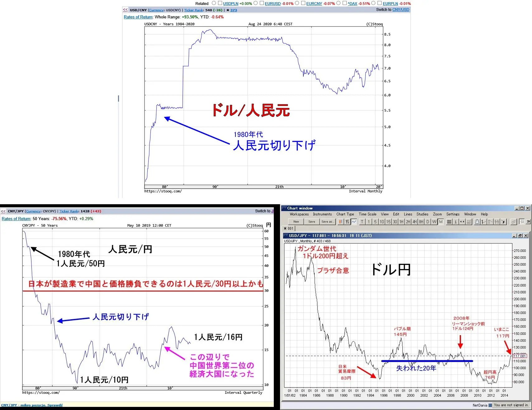 輸出入は為替レートが大きいからドル安に持ってかないと世界の工場にはなれん