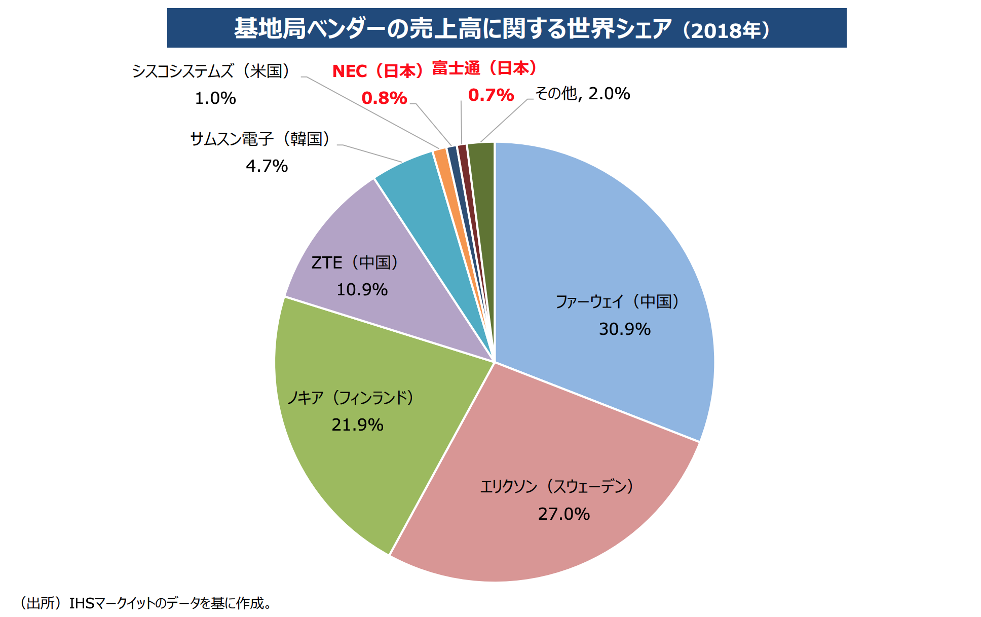 もっとも、世界の基地局市場はファーウェイ、スウェーデンのエリクソン、フィンランドのノキアの3社が8割を占める。